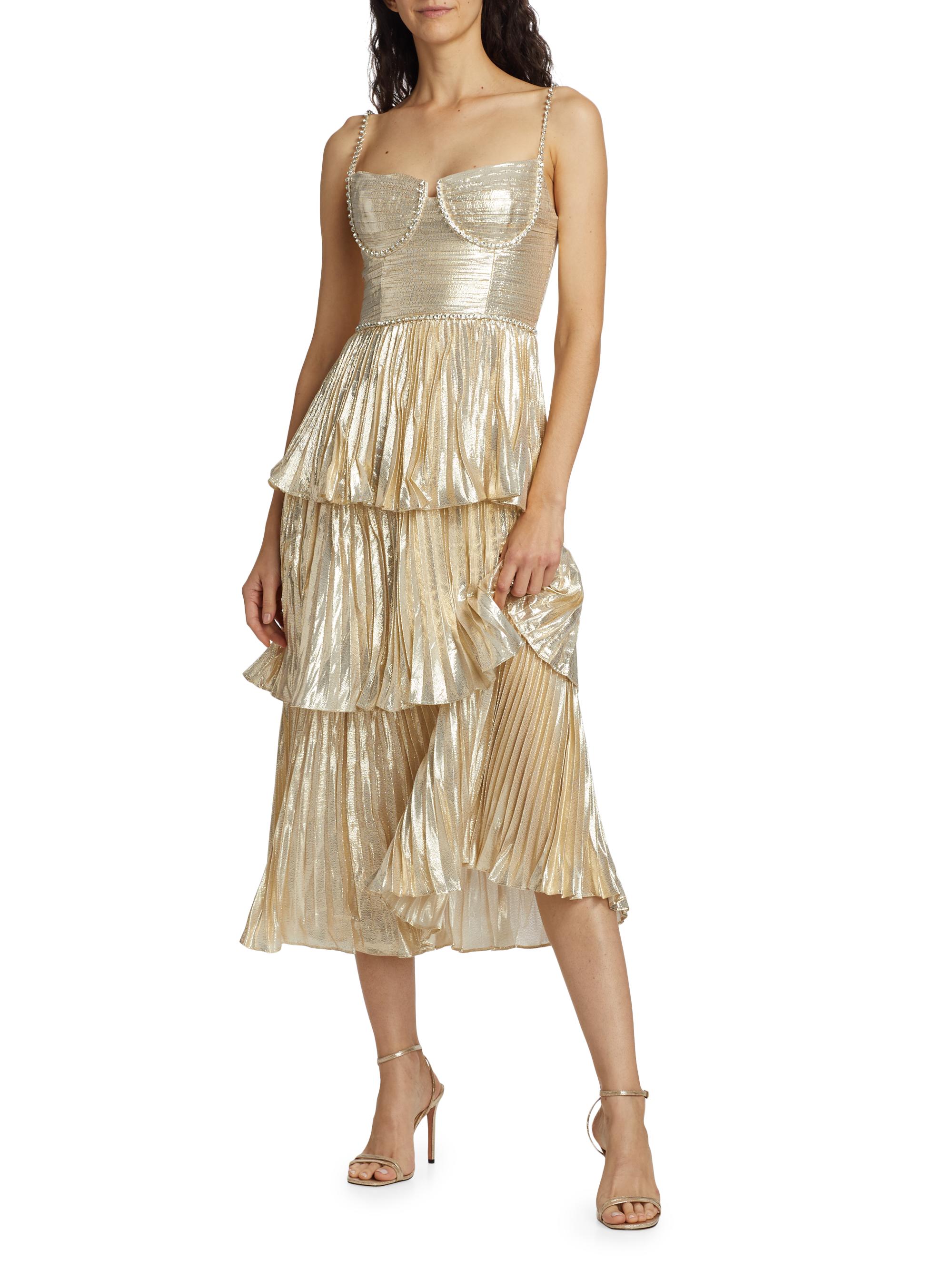 Https Www Saksfifthavenue Com Product Self Portrait Gold Metallic Tiered Midi Dress 0400019928932 Html